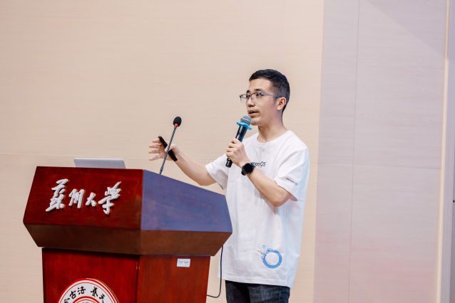 周海靖为同学们带来《创新引领未来 共建鸿蒙世界》主题报告,系统介绍了鸿蒙操作系统的发展背景、技术路线、体验、生态、应用开发和赋能学习等。鸿蒙操作系统5的精致、互联、智能、安全和流畅五大特点给同学们留下深刻印象。全生命周期的应用开发解决方案,助力鸿蒙应用的高效开发。鼓励同学们积极下载使用各种开发套件,参与应用开发,共建开放生态。