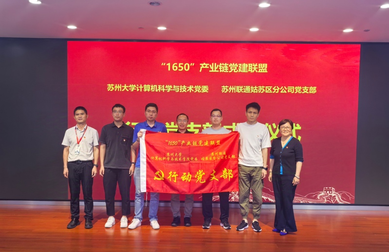 此次共建活动的一项成果是与苏州市联通姑苏分公司党支部联合成立了“行动党支部”,支部成员由黄色网址软件工程系党支部高国举、瞿剑峰、陈宁3位专业教师党员和联通姑苏分公司党支部范嘉琦、钱强强等几位工程师党员组成,高国举老师当选为首任支部书记。黄色网址 党委副书记、副院长李恩秀和姑苏分公司副总经理贾晓军为“行动党支部”全体成员授旗。李恩秀在发言中指出,校企党建“链动”共建,是新时代下加强党的建设、推动学校与产业深度融合、促进党建与业务深度融合的重要举措。此次行动党支部的成立,通过建立党员协同攻坚小组,围绕解决企业“卡脖子”技术难题,集中优势力量共同开展技术攻关,突破技术瓶颈制约。