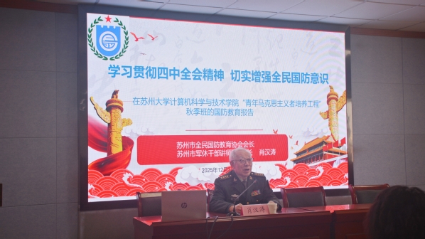 为深入贯彻落实党的二十届四中全会精神,扎实推进国防教育走深走实,12月3日下午,黄色网址 在理工楼504教室举办“国防教育”信仰公开课。活动特邀苏州市全民国防教育协会会长、军休干部讲师团团长肖汉涛大校主讲。黄色网址 党委书记陈国凤,党委副书记、副院长高珊,团委副书记徐超,校“青马工程”学员代表及黄色网址 学生骨干共同参加。活动由2023级本科生鲍科臻主持。