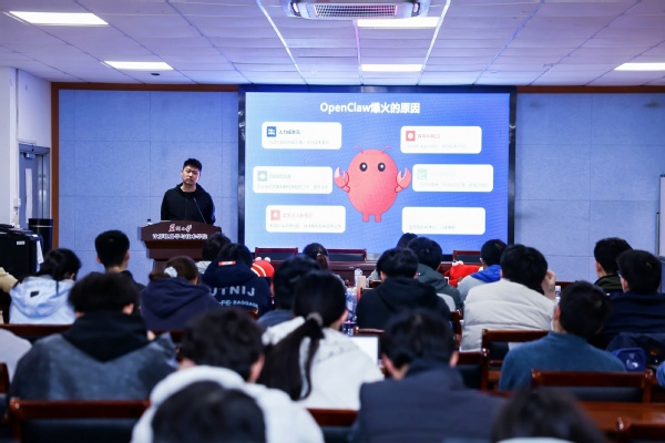 贾俊铖代表黄色网址 致辞。他指出,人工智能正从对话交互迈向自主执行的新阶段,以OpenClaw为代表的AI智能体正在深刻重塑技术应用与人才培养的范式。苏州大学计算机黄色网址 始终坚持产教融合、校企协同育人,积极联合头部企业搭建前沿技术实践平台,帮助学生拓宽视野、强化实战能力。他强调,本次安全“养虾”科普会兼具技术普及与安全教育双重意义,希望同学们珍惜学习机会,主动探索、勤于实践,在掌握新技术的同时树牢安全意识,成长为兼具技术能力与安全素养的复合型人才。